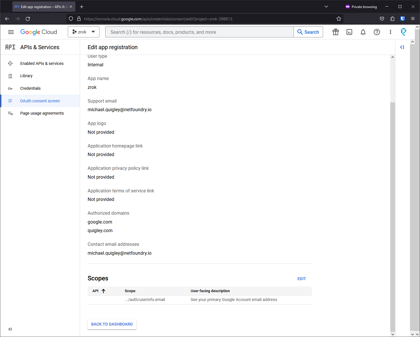 Add the ../auth/userinfo.email scope (required for zrok to receive user email addresses):